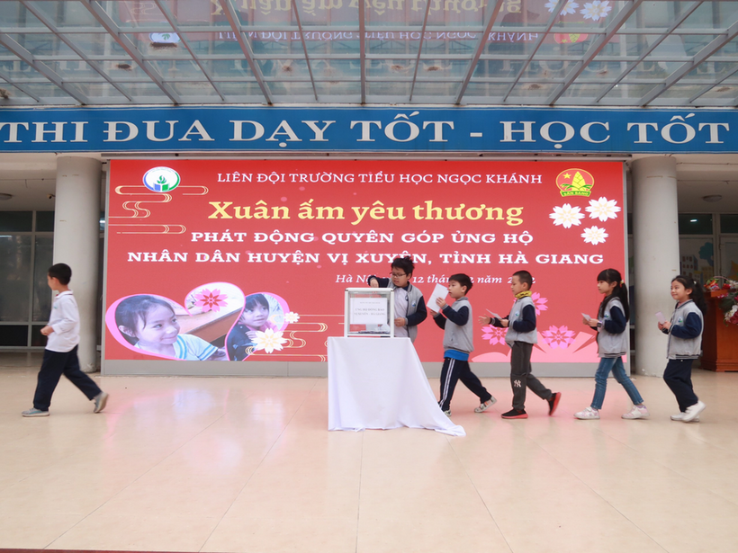 Để buổi kỉ niệm trở nên ý nghĩa, nhà trường còn kết hợp tổ chức Phát động quyên góp ủng hộ nhân dân huyện Vị Xuyên, tỉnh Hà Giang. Tập thể CBGVNV cùng toàn thể các con học sinh đã chung tay góp sức ủng hộ. Bằng tất cả tấm lòng, hy vọng nhân dân huyện Vị Xuyên sẽ có một cái Tết thật hạnh phúc và ấm no.