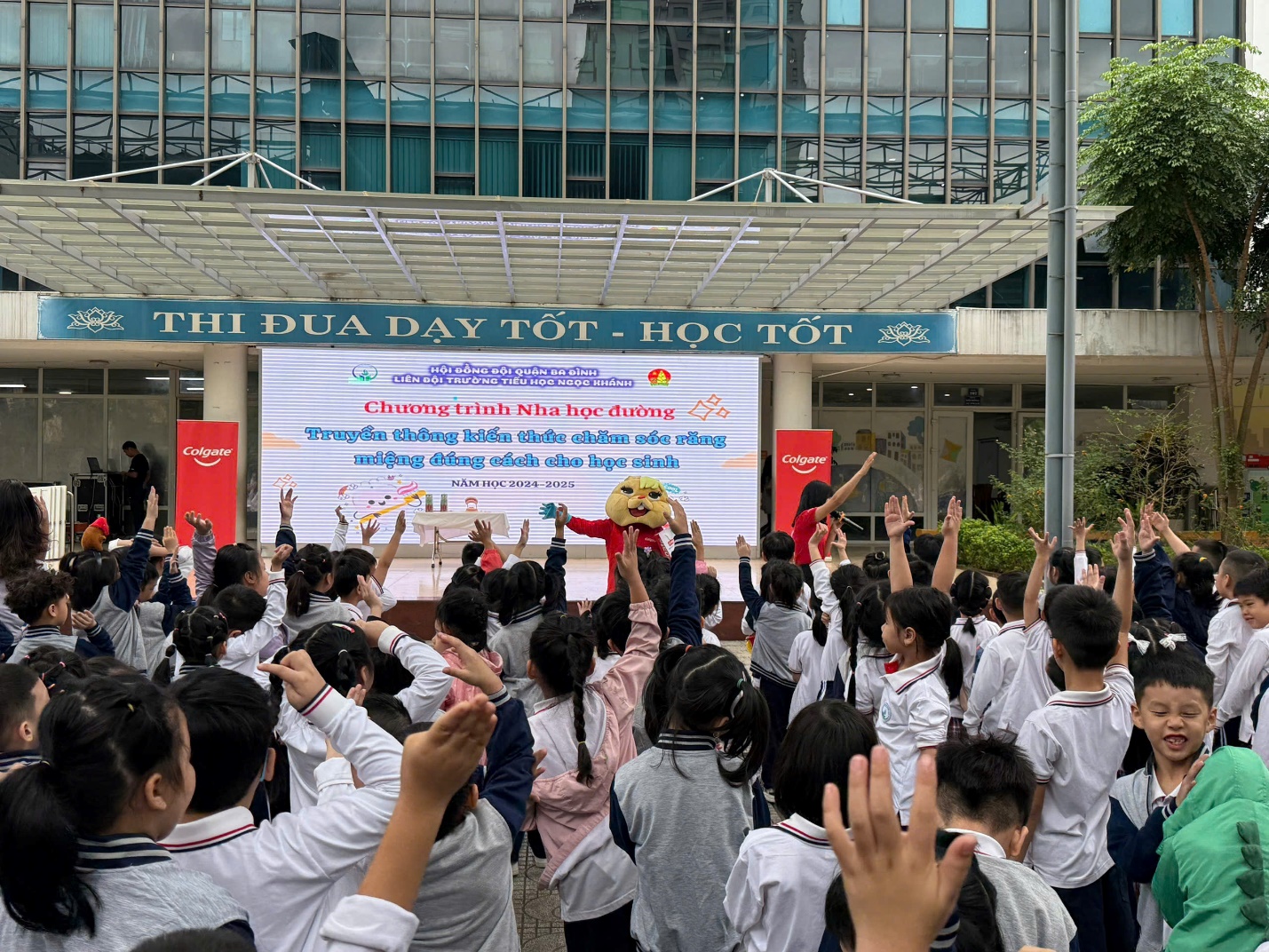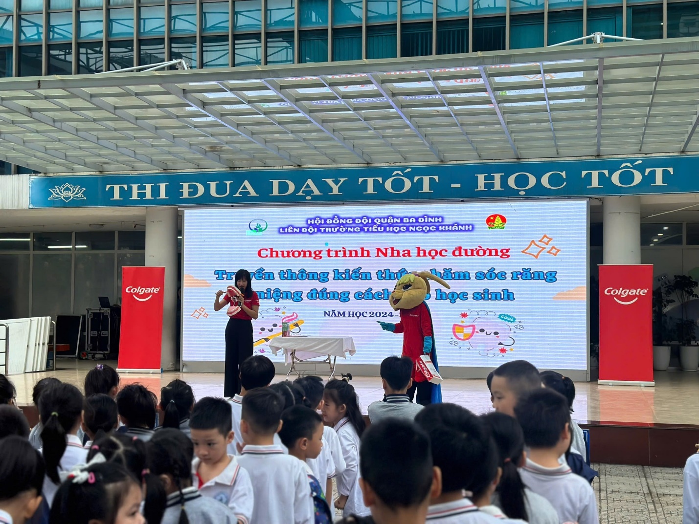 Nhằm giúp học sinh hiểu được tầm quan trọng của việc chăm sóc răng miệng đúng cách, sáng ngày 28/10/2024, trường Tiểu học Ngọc Khánh đã phối hợp với Công ty Colgate Pamolive Việt Nam tổ chức chương trình Nha học đường nhằm truyền thông, giáo dục đến các bạn học sinh chăm sóc răng miệng sao cho đúng cách nhất.