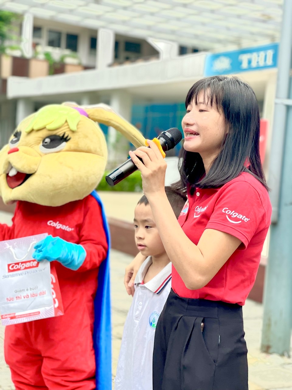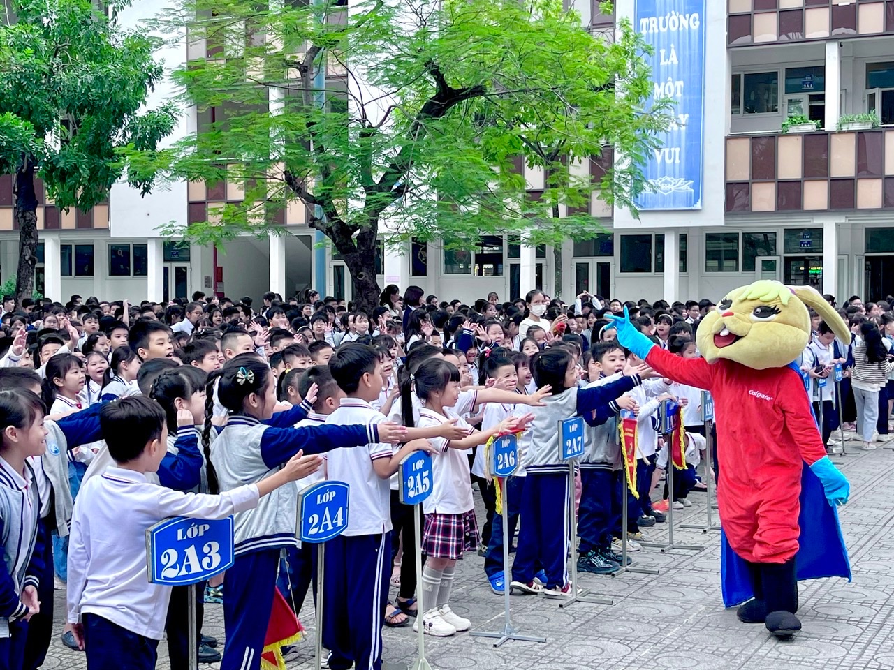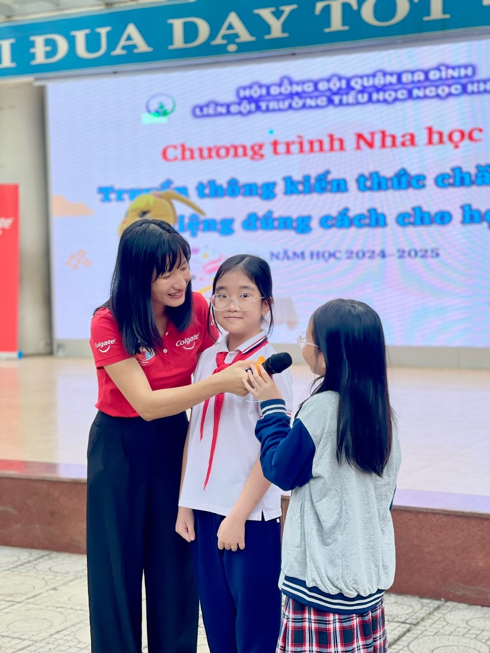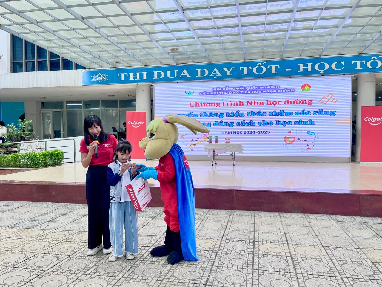Theo khảo sát của Hội Răng hàm mặt Việt Nam cho thấy, có đến hơn 90% các em nhỏ nhất là học sinh ở độ tuổi tiểu học mắc các vấn đề về răng miệng như sâu răng, sún răng…phần lớn đến từ việc chăm sóc răng miệng chưa đúng cách. Đối với nhà trường, chương trình Nha học đường cùng với Colgate là một trong những chương trình có ý nghĩa đặc biệt nhằm giáo dục học sinh biết tự bảo vệ và chăm sóc răng miệng, nhằm hạn chế mắc các bệnh về lý về răng, mang lại nụ cười tươi sáng cho các bạn học sinh. Sau đây là một vài hình ảnh giao lưu giữa chuyên viên phụ trách Nha học đường, cùng với bác sĩ Thỏ và các bạn học sinh trường Tiểu học Ngọc Khánh: