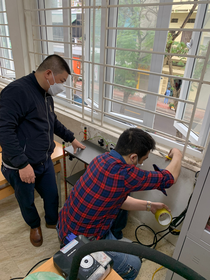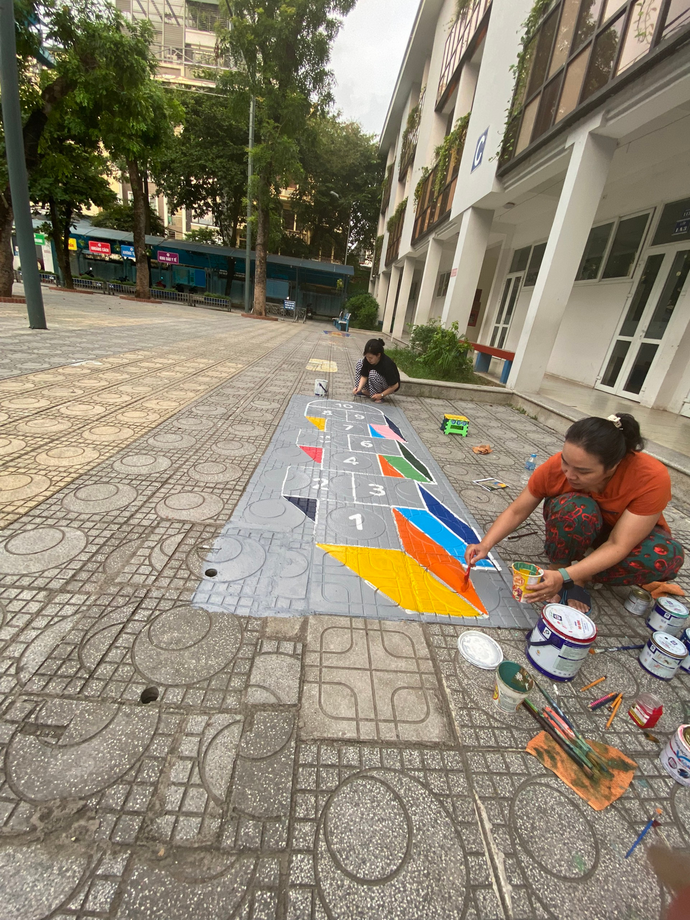 Nhà trường phối hợp cùng cha mẹ học sinh làm mới nhiều pa nô, áp phích tuyên truyền ở trường, vẽ trang trí nhiều bức tranh có ý nghĩa để giáo dục học sinh.