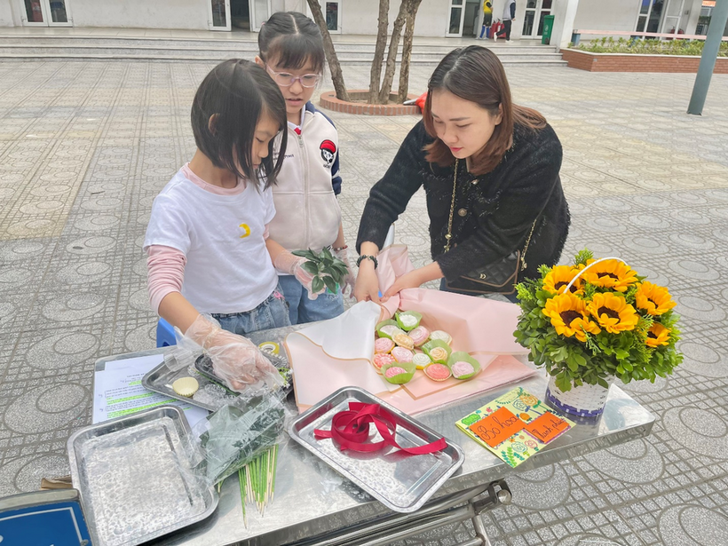 Học sinh Khối 4 làm Bánh dẻo rồi trang trí theo chủ đề 8/3