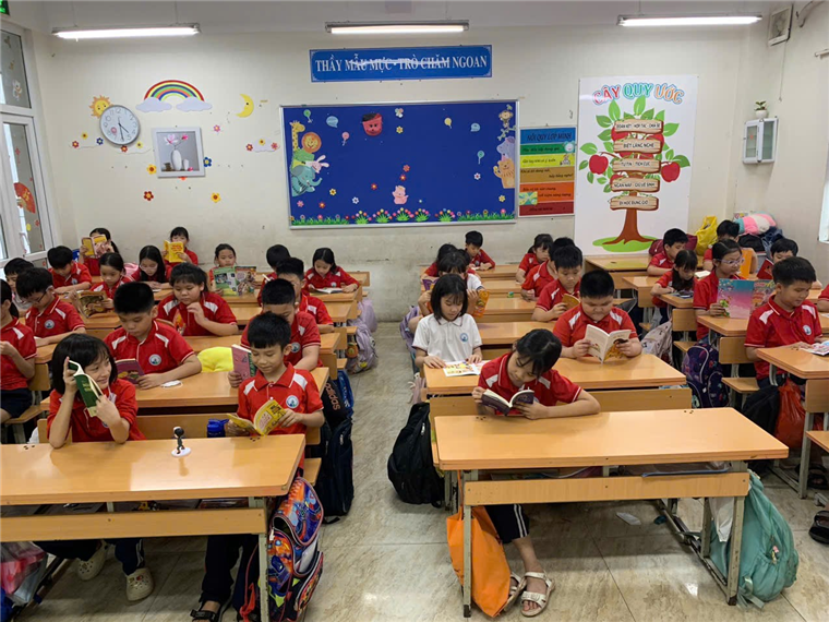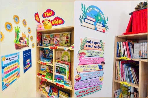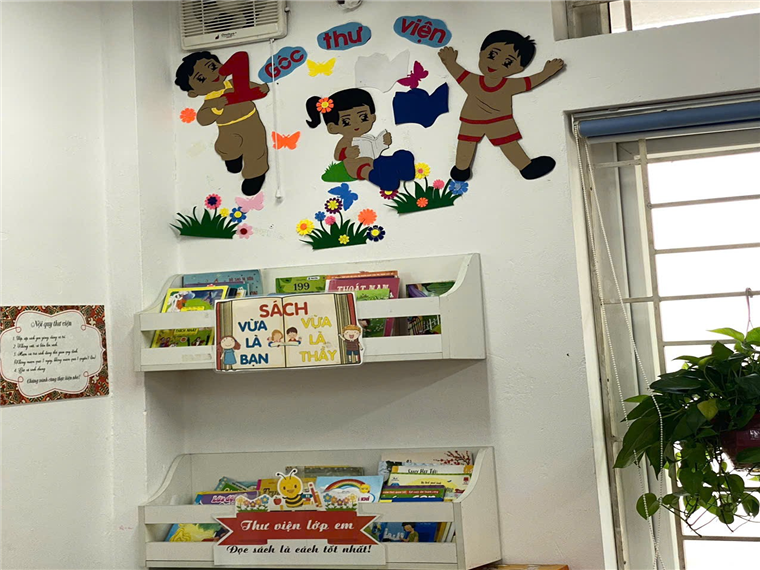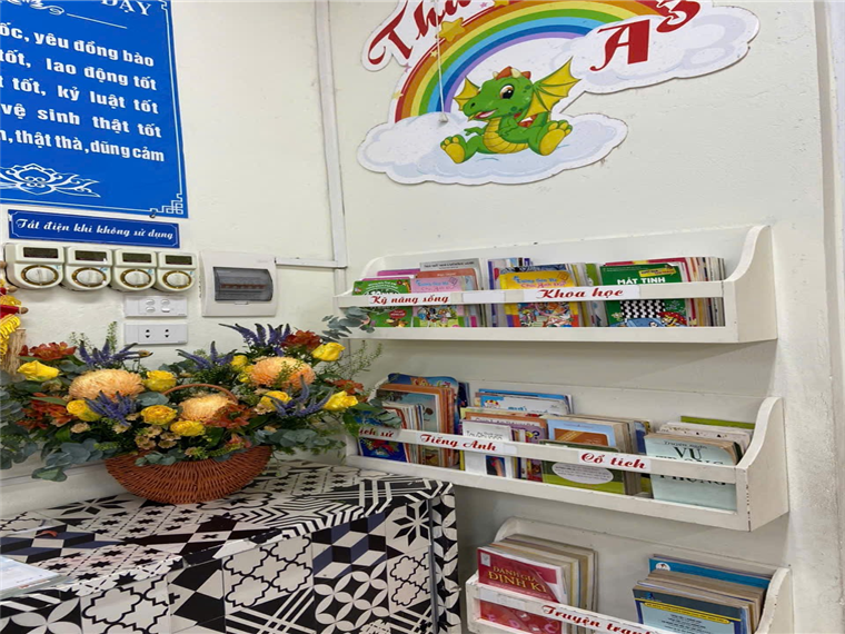 Các lớp “Góc Thư viện học” mỗi lớp đã xây dựng cho mình 1 tủ sách riêng, 1 văn hóa đọc với phong cách vô cùng ấn tượng. Các giá sách lớp học tạo ra không gian học tập độc đáo và đầy cảm hứng. Bằng cách sắp xếp gọn gàng và trang trí sáng tạo, giá sách không chỉ tạo nên một vẻ đẹp đặc biệt cho lớp học mà còn khuyến khích sự hiếu học và tương tác của học sinh với sách. Với sự tối giản và sáng tạo, trang trí giá sách lớp học đem đến không gian thân thiện và khuyến khích sự đam mê với việc học tập.