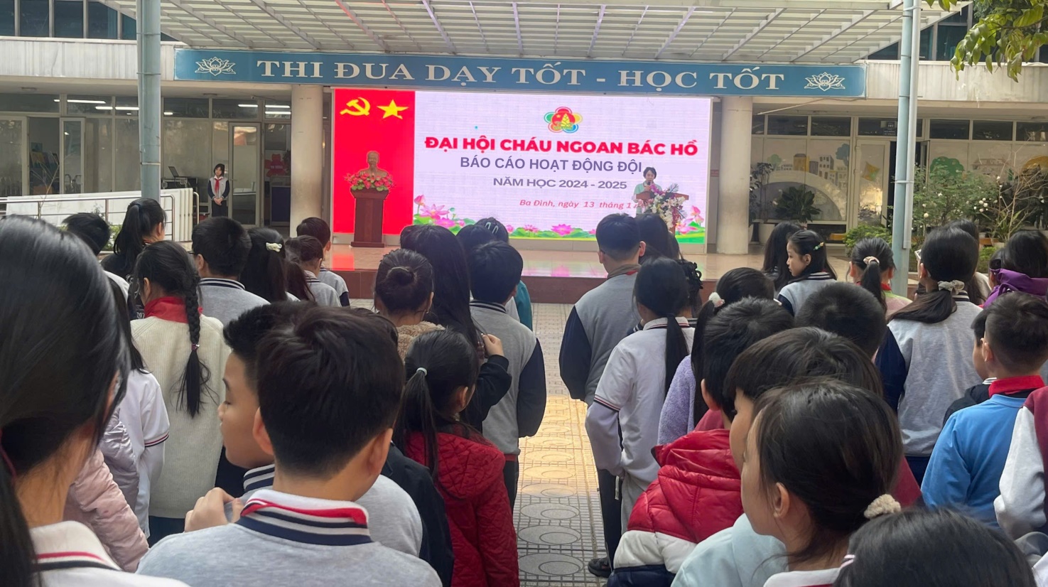 Thực hiện chương trình công tác Đội và phong trào thiếu nhi năm học 2024-2025, hướng tới Đại hội Cháu ngoan Bác Hồ toàn quốc lần thứ X - năm 2025, chào mừng kỉ niệm 135 năm Ngày sinh nhật Bác, chiều nay ngày 13/1/202 Liên đội Trường Tiểu học Ngọc Khánh long trọng tổ chức Đại hội Cháu ngoan Bác Hồ với chủ đề: “Ngày hội Thiếu nhi Thủ đô tiến bước dưới cờ Đoàn”