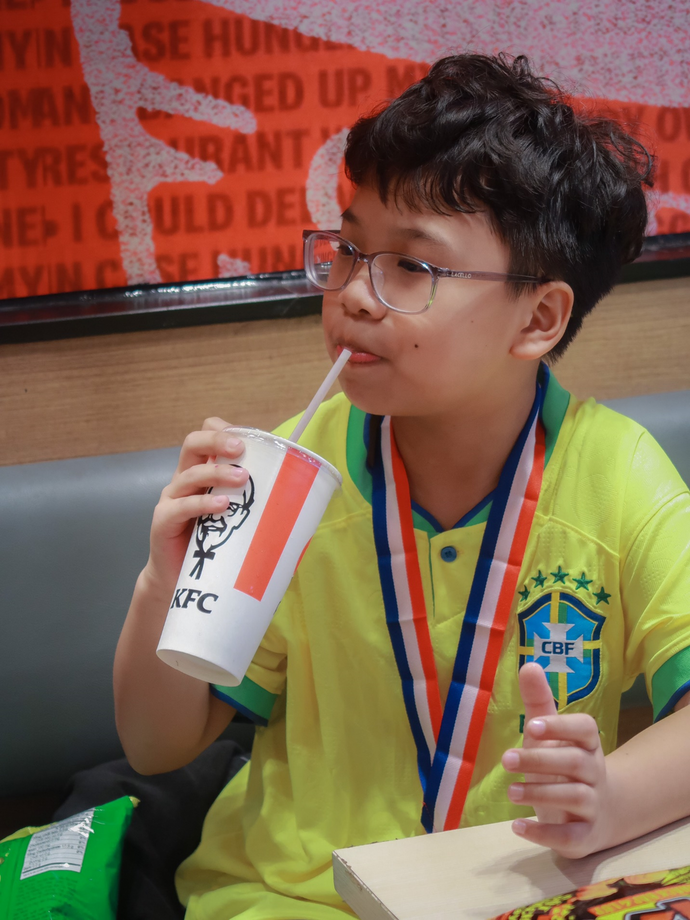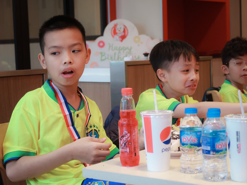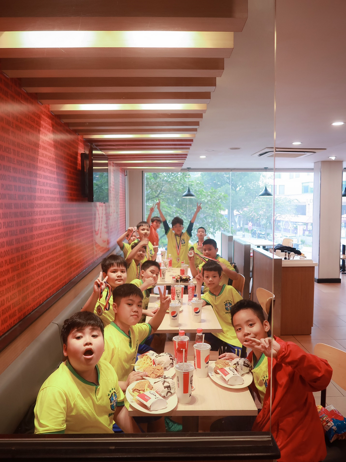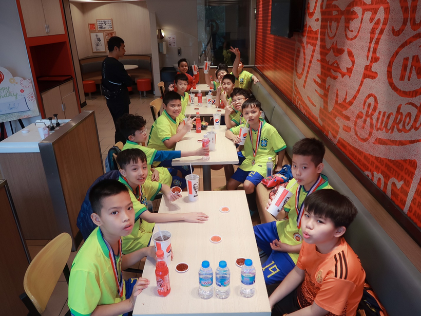 Sau trận đấu, các bạn nhỏ đã được liên hoan tại nhà hàng KFC. Các em rất vui mừng, phấn khởi và cảm thấy hạnh phúc bởi sự cố gắng của mình trong giải đấu qua.