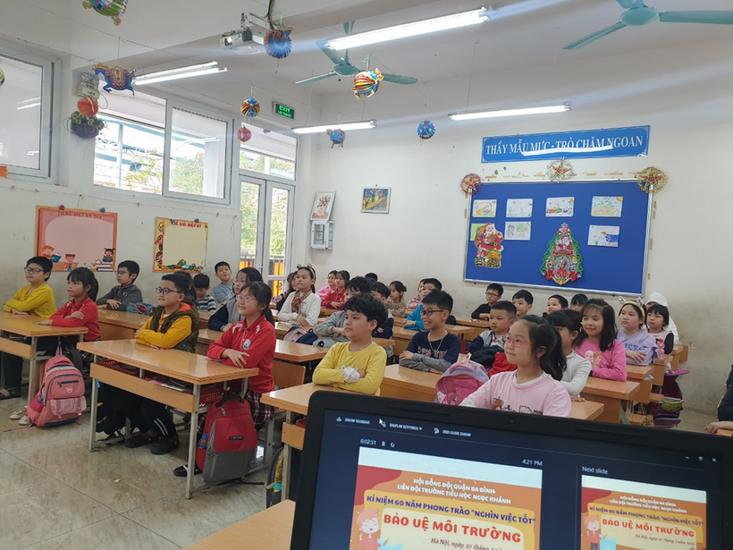 Thiết thực kỷ niệm 60 năm phong trào “Nghìn việc tốt”, Liên đội Trường Tiểu học Ngọc Khánh phát động thi đua chủ điểm “Bảo vệ môi trường”
