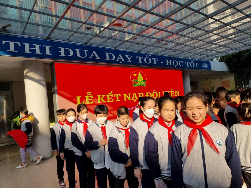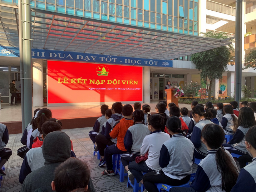 Buổi lễ kết nạp đội viên mới của Liên đội trường Tiểu học Ngọc Khánh đã diễn ra đúng nghi lễ cùng với những tiếng vỗ tay giòn giã của các bạn học sinh. Được đứng vào hàng ngũ Đội Thiếu niên Tiền phong Hồ Chí Minh là vinh dự, niềm tự hào đối với các bạn học sinh khối lớp 5. Từ hôm nay, các em được mang trên vai chiếc khăn đỏ thắm màu cờ Tổ Quốc. Màu khăn đỏ như nhắc nhở các em phải phấn đấu vươn lên không ngừng để trở thành Đội viên tốt, xứng đáng là con ngoan trò giỏi – cháu ngoan Bác Hồ.