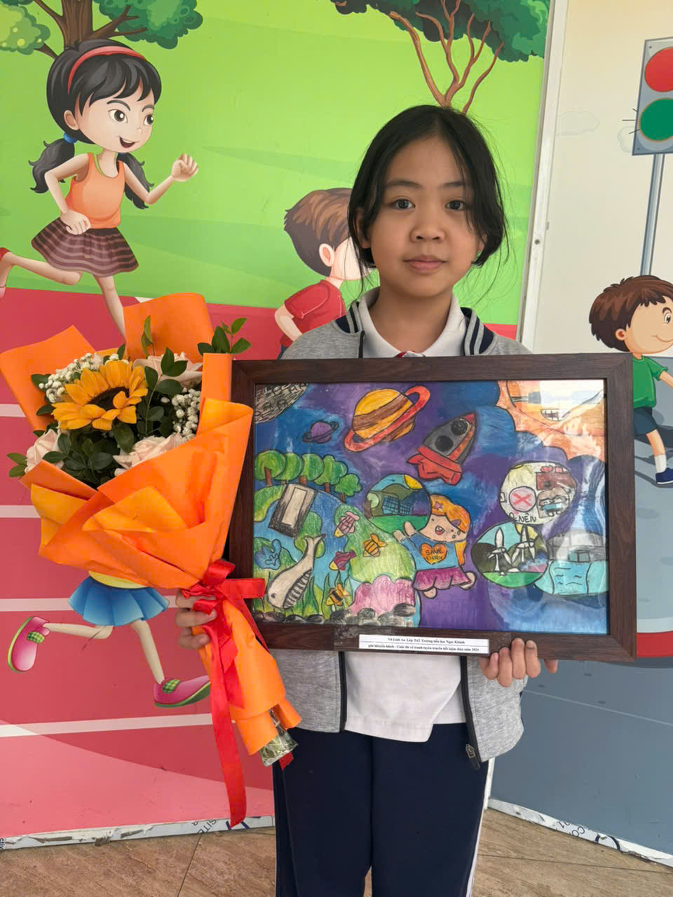 Học sinh Nguyễn Bảo Châu, lớp 5A3 với tác phẩm đạt giải Ba.
