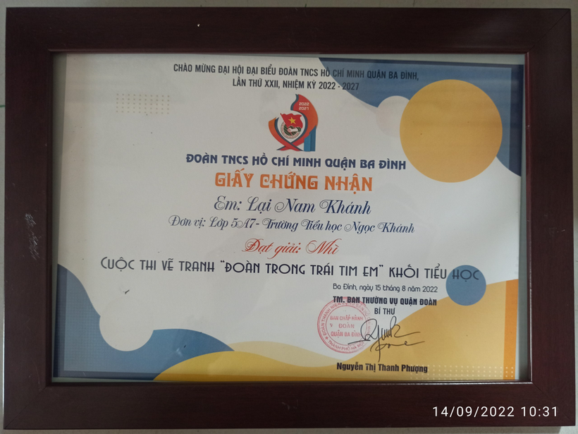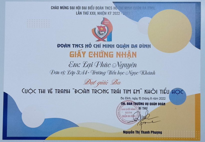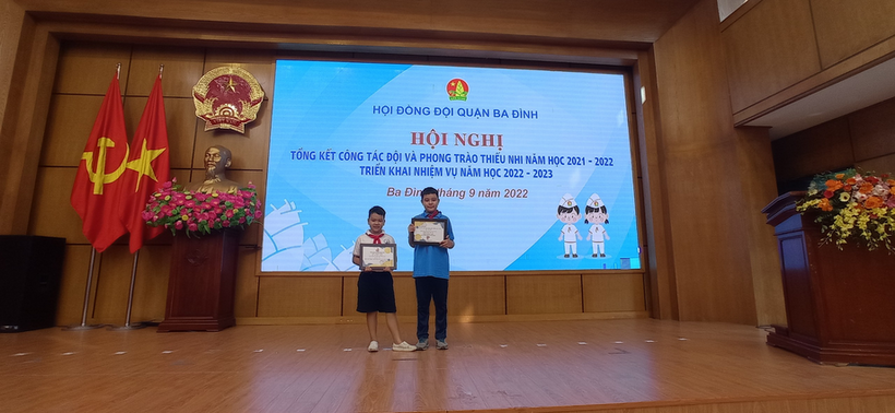 Cũng tại Hội nghị tổng kết, 2 bạn học sinh Lại Nam Khánh - 5A7 và Lại Phúc Nguyên – 3A4 của Liên đội đã vinh dự được nhận giấy khen trong cuộc thi vẽ tranh Chào mừng Đại hội Đoàn TNCS Hồ Chí Minh với chủ đề “Đoàn trong trái tim em”