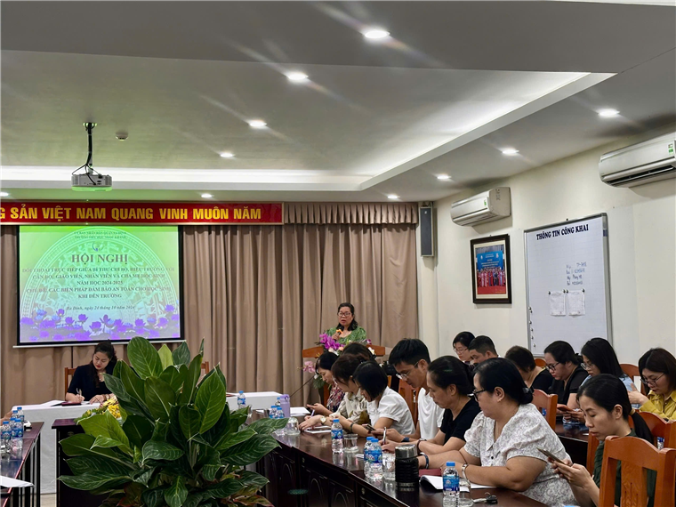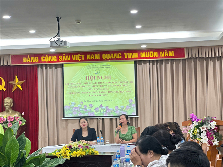 Chiều ngày 24 tháng 10 năm 2024, trường Tiểu học Ngọc Khánh đã tổ chức Hội nghị đối thoại giữa người đứng đầu với cán bộ, giáo viên, nhân viên và đại diện CMHS toàn trường về các biện pháp đảm bảo an toàn cho học sinh khi đến trường.