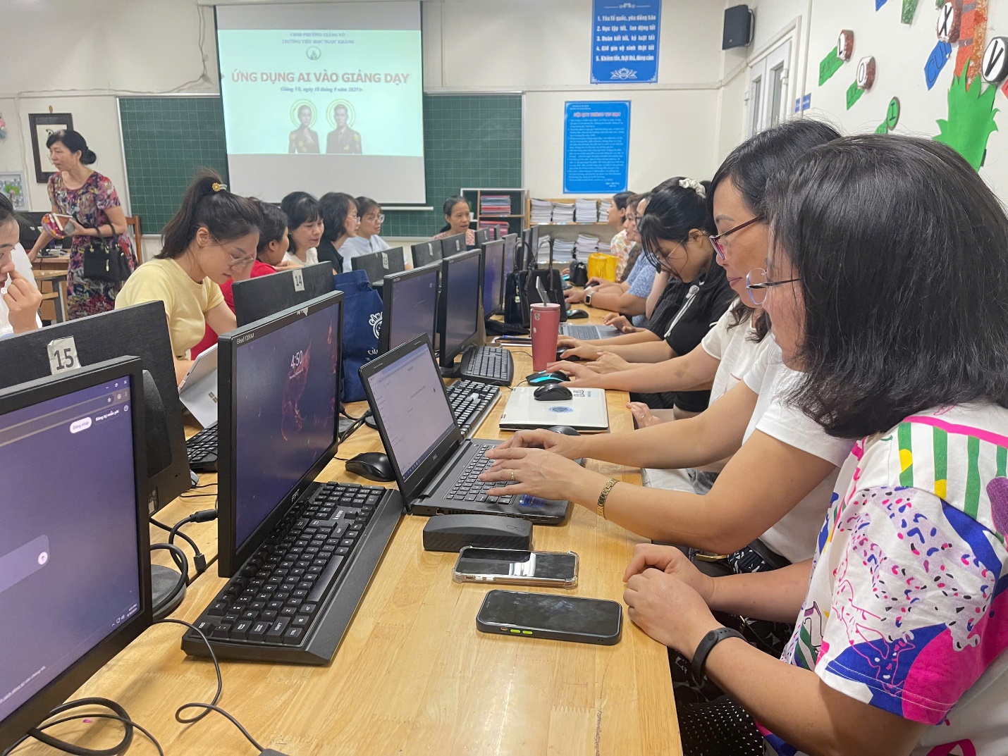 Sau buổi chuyên đề, tập thể cán bộ, giáo viên trường Tiểu học Ngọc Khánh đều cảm thấy hứng thú và bày tỏ sẵn sàng áp dụng AI vào giảng dạy.