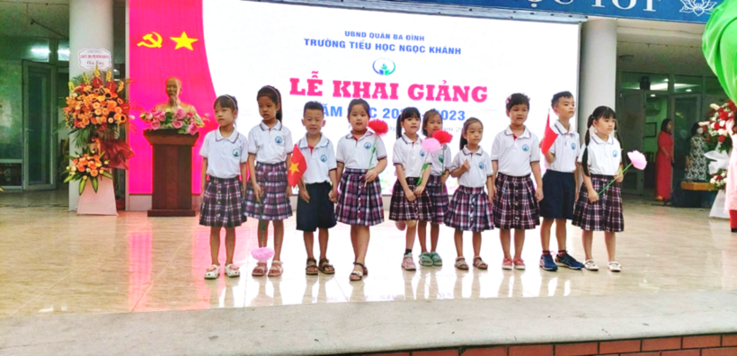 Không khí buổi lễ diễn ra ấm cúng, những gương mặt hân hoan, chờ đợi xen chút hồi hộp của các con học sinh và sự tin yêu của các thầy cô giáo đã là sự kết nối tinh thần tuyệt vời cho ngày khai giảng hôm nay. Năm học mới đã bắt đầu, chúng ta hãy cùng nhau khởi động cho một hành trình học tập mới dưới mái trường hạnh phúc mang tên Tiểu học Ngọc Khánh các con nhé!