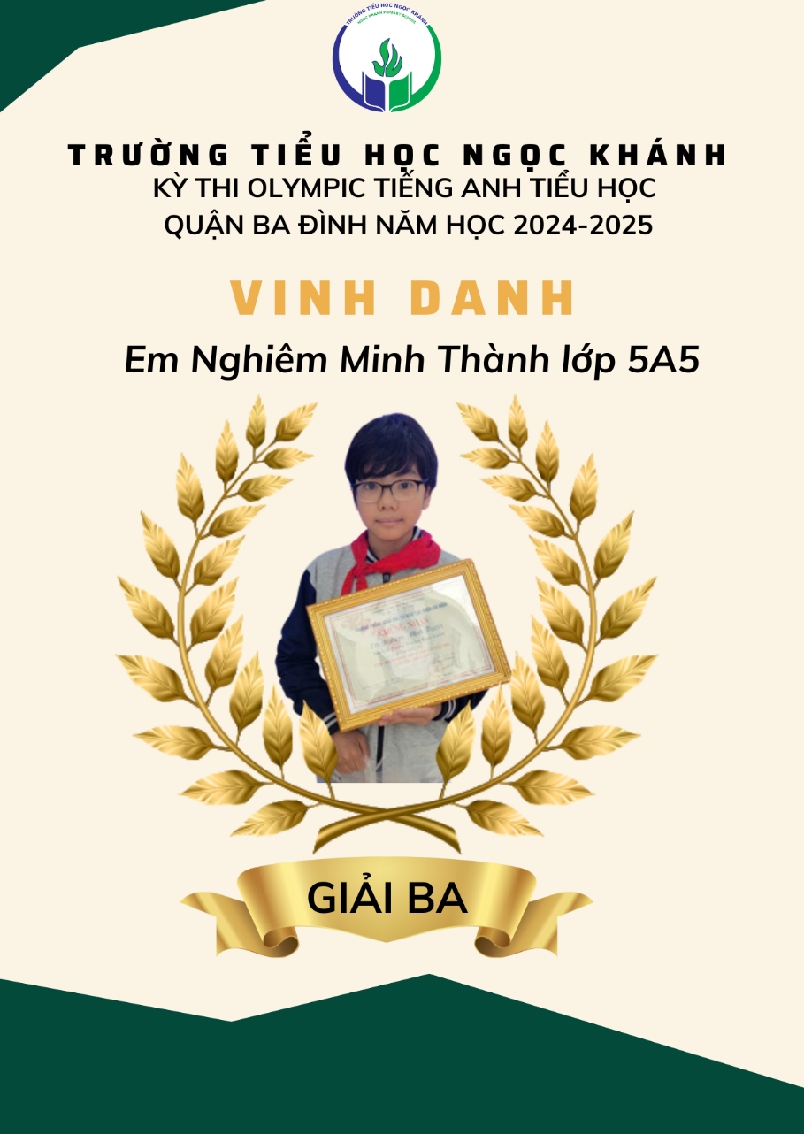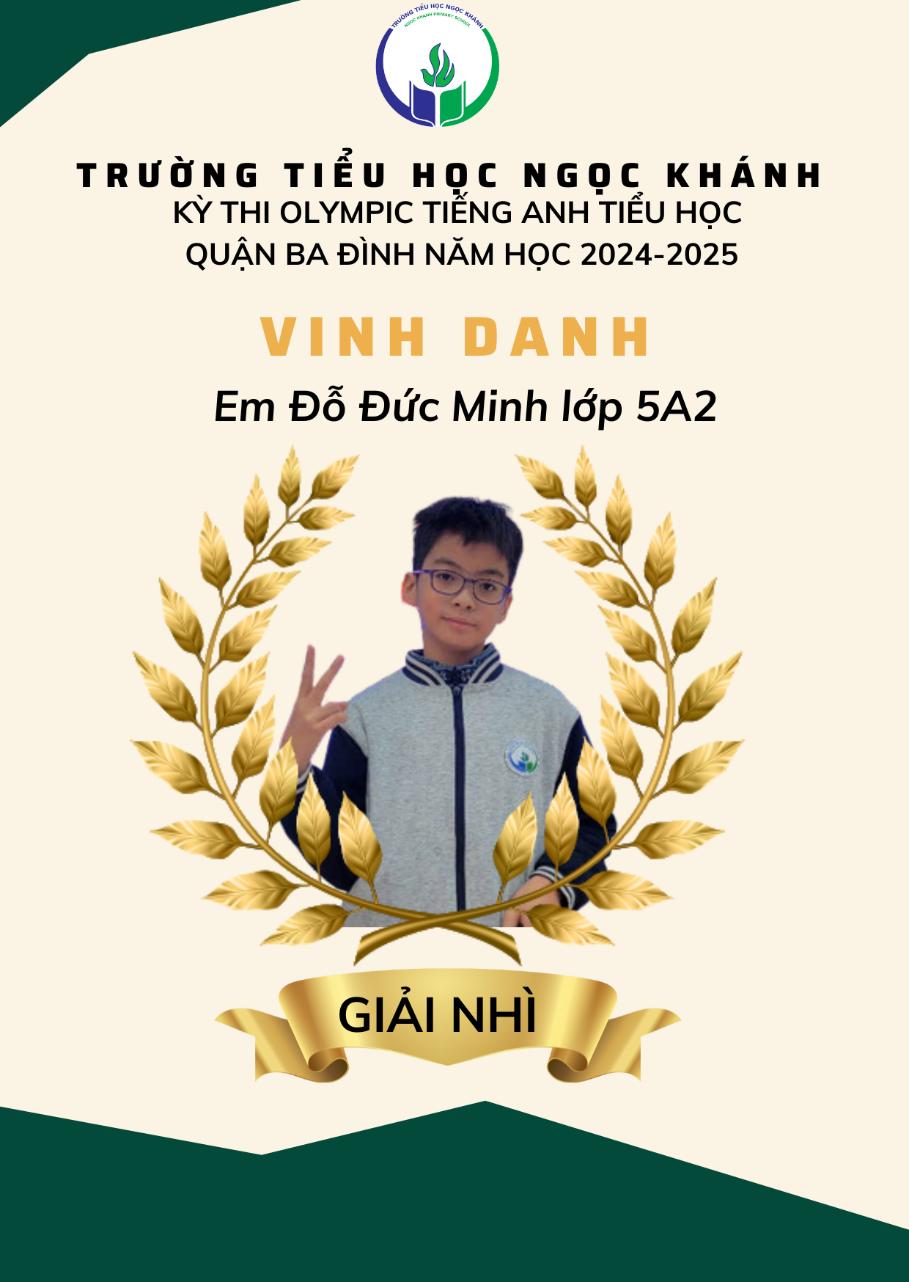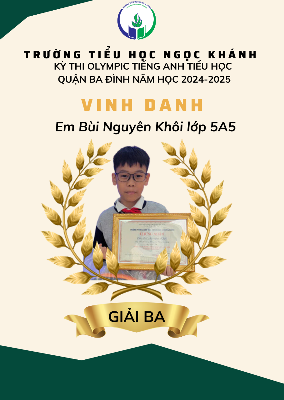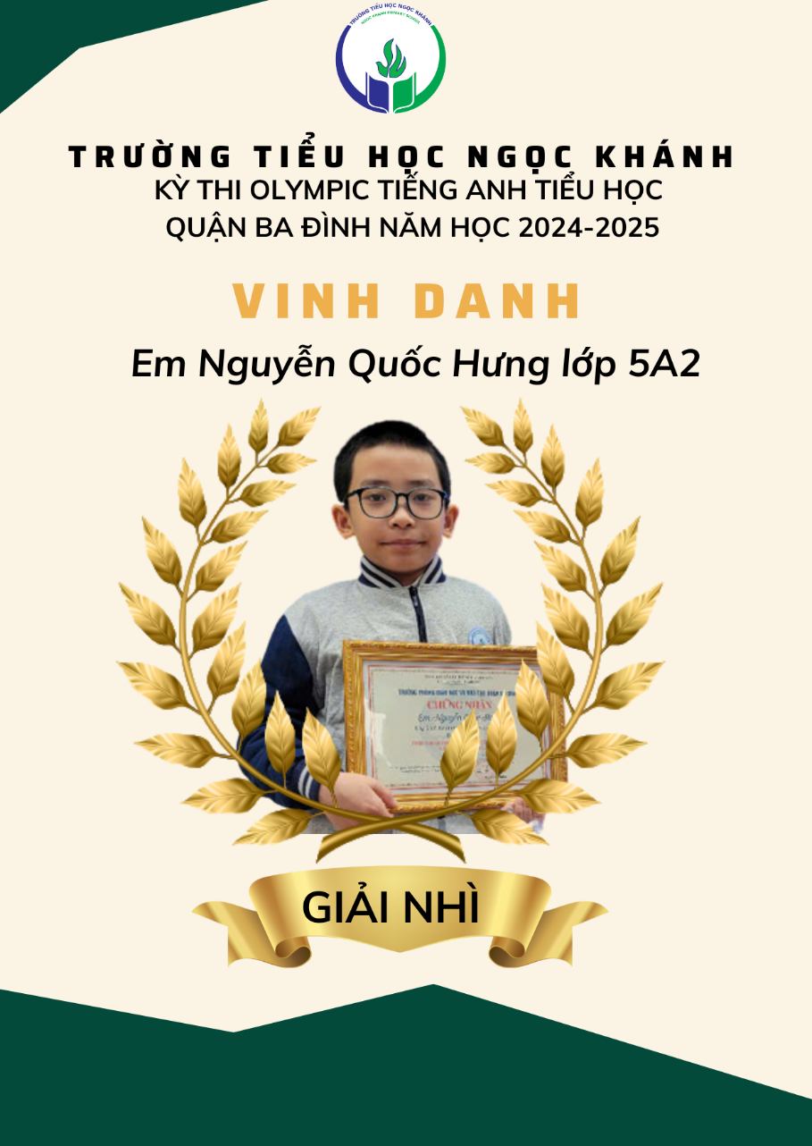 Được sự quan tâm, chỉ đạo sát sao từ Ban giám hiệu nhà trường, cùng với sự động viên, khích lệ từ phía thầy cô, sự quan tâm, giúp đỡ của các quý phụ huynh và sự cố gắng, nỗ lực của các con, các em học sinh trường tiểu học Ngọc Khánh đã đạt được những thành tích cao với 04 giải Nhì, 03 giải Ba và 06 giải Khuyến khích.