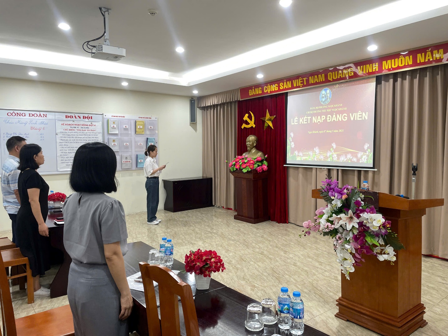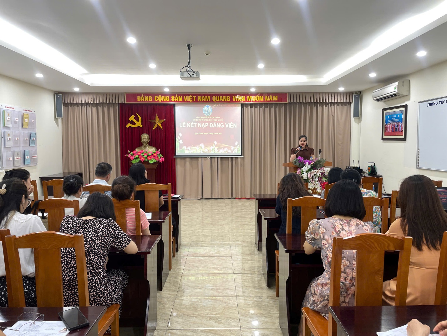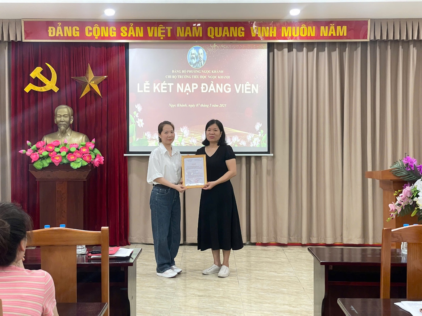 Bồi dưỡng, kết nạp đảng viên mới là nhiệm vụ thường xuyên, có ý nghĩa quan trọng trong công tác xây dựng Đảng, góp phần phát triển, nâng cao chất lượng đảng viên và sức chiến đấu của tổ chức cơ sở Đảng. Được sự đồng ý của Quận ủy Ba Đình, Đảng ủy phường Ngọc Khánh, chiều ngày 07/05/2025 tại phòng Hội đồng sư phạm nhà trường, Chi bộ trường Tiểu học Ngọc Khánh đã tổ chức kết nạp quần chúng ưu tú Nguyễn Hồng Hạnh vào hàng ngũ của Đảng Cộng Sản Việt Nam.