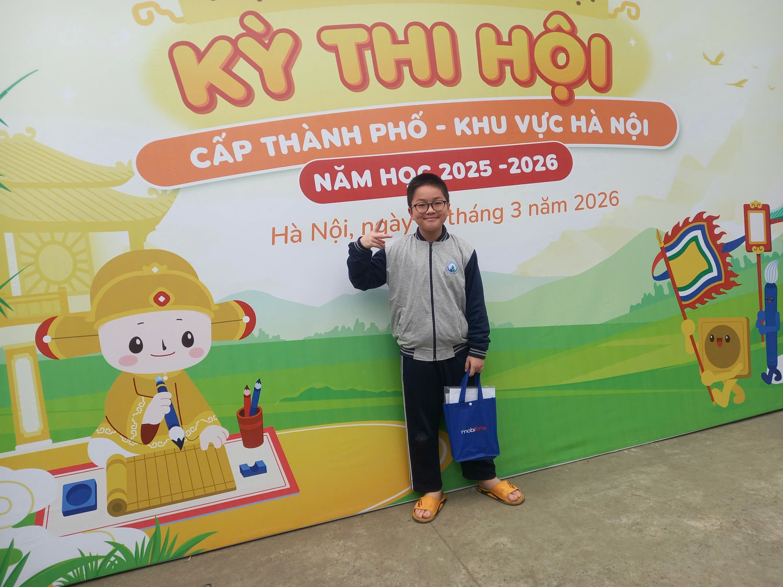 Niềm vui của bạn Nguyễn Bá Trọng Hiếu khi tham gia thi Trạng nguyên Tiếng Việt cấp Thành phố năm học 2025 – 2026.