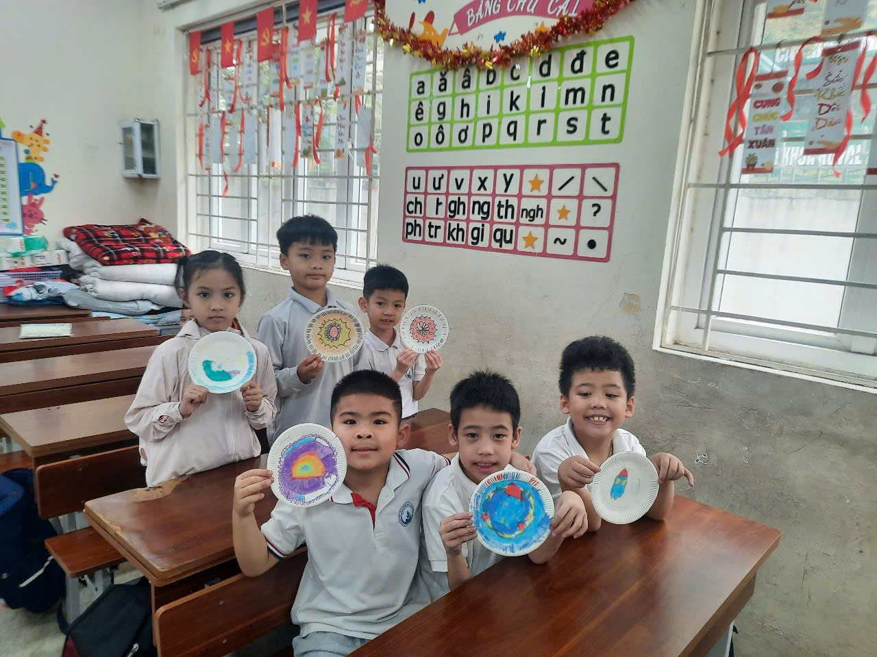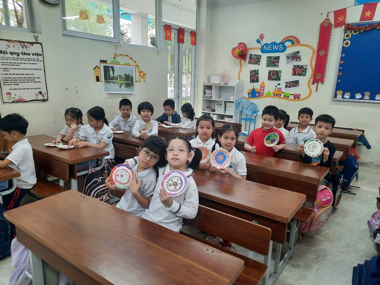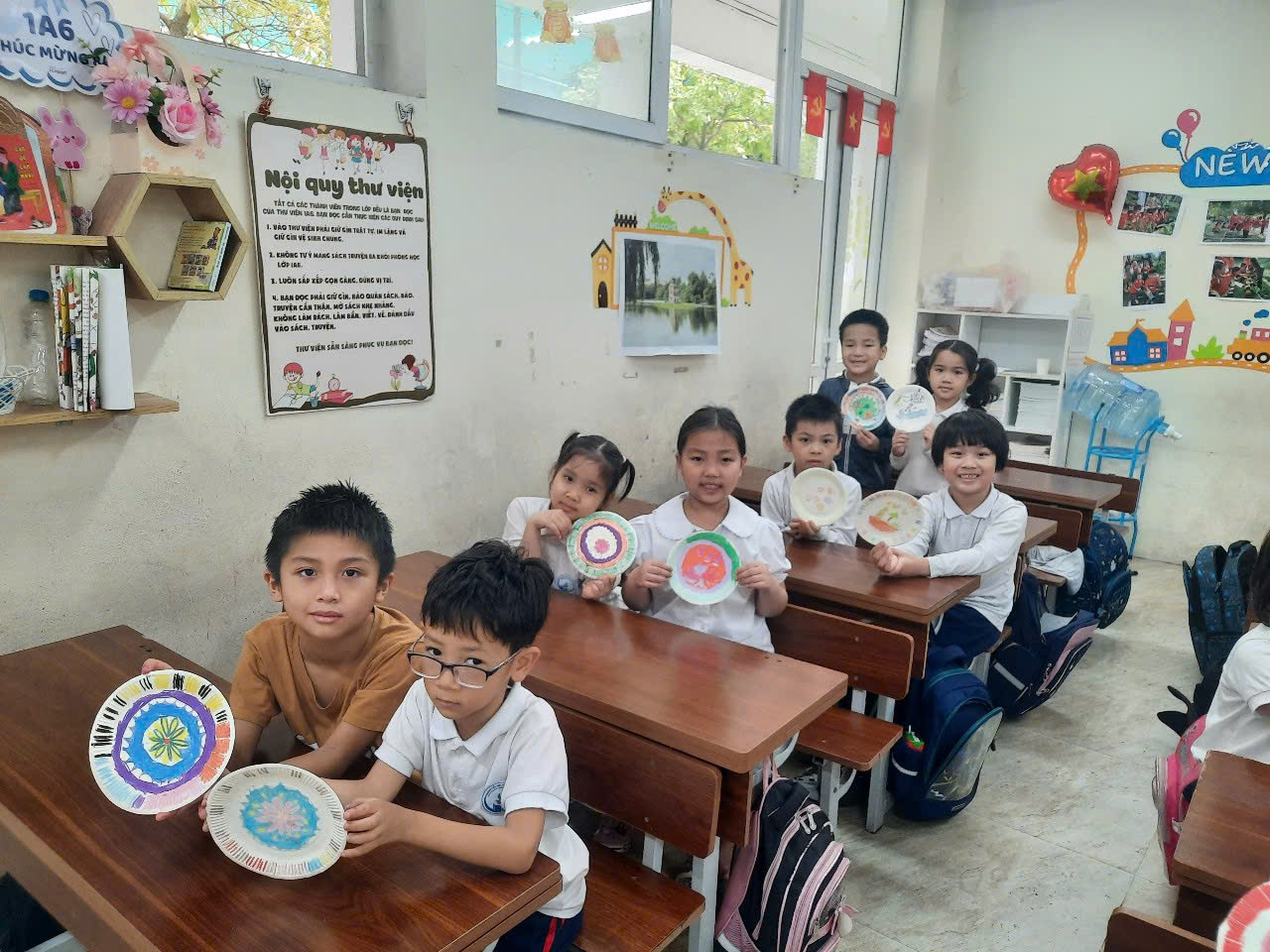Tái chế đĩa giấy là hoạt động sáng tạo tuyệt vời giúp chúng ta rèn luyện sự khéo léo, kích thích tư duy và ý thức bảo vệ môi trường! Chỉ cần một chiếc đĩa giấy và màu vẽ, các bạn nhỏ lớp 1A6 đã tạo ra rất nhiều bức tranh ngộ nghĩnh, đáng yêu.
